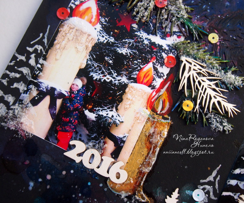 А обязательным элементом стала дорисованная свеча с подтеками воска. Рисовала акриловыми красками. И мне даже нравится, что дорисовка у меня золотом, нарисованная свеча, как-то даже живее, чем на фото)))